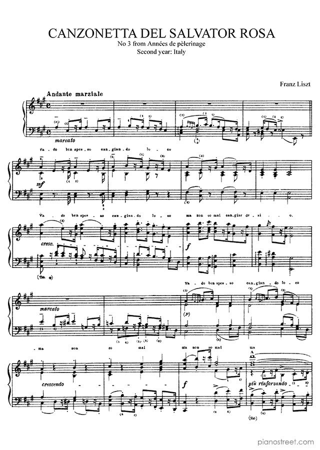 Canzonetta del Salvator Rosa - No. 3 is a piano piece by the early romantic composer Franz Liszt who lived between the years 1811 and 1886.