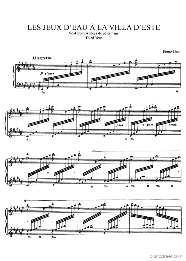 DOWNLOAD: Franz Liszt - Les jeux d'eau à la Villa d'Este No. 4 ( from Années de pèlerinage, Third Year by Liszt). Piano sheet music to print immediately or to view in mobile devices.