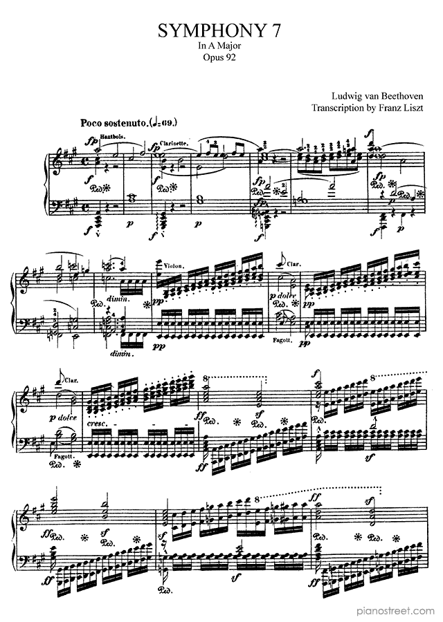 Classical piano sheet music by Liszt to download: Beethoven Symphony 7 Op. 92 in the key of This piece has difficulty level 8+ in the category Transcription
