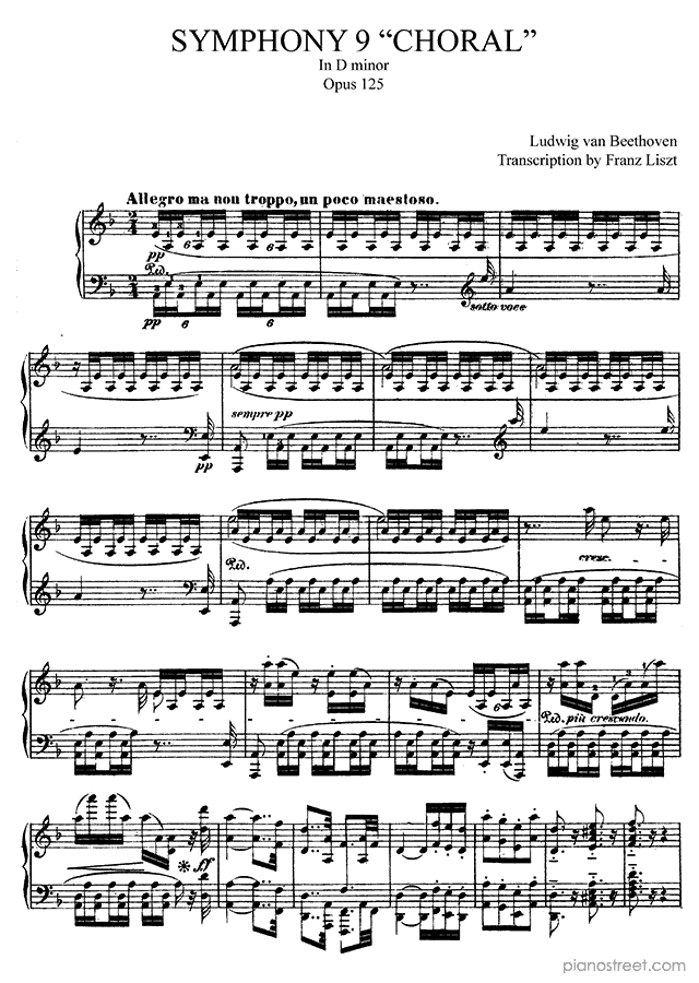 Beethoven Symphony 9 Op. 125 in D Minor, by the classical composer Franz Liszt. This piano piece was initially published in the year 1824 and is included in Beethoven Symphonies by Liszt.