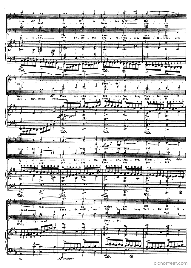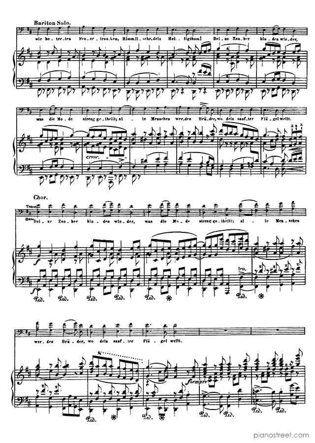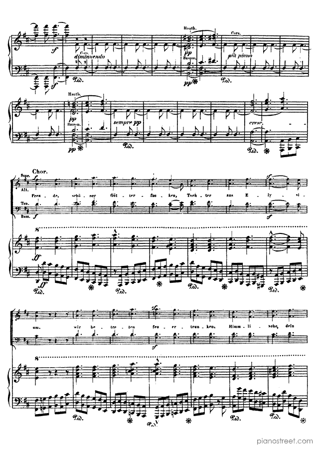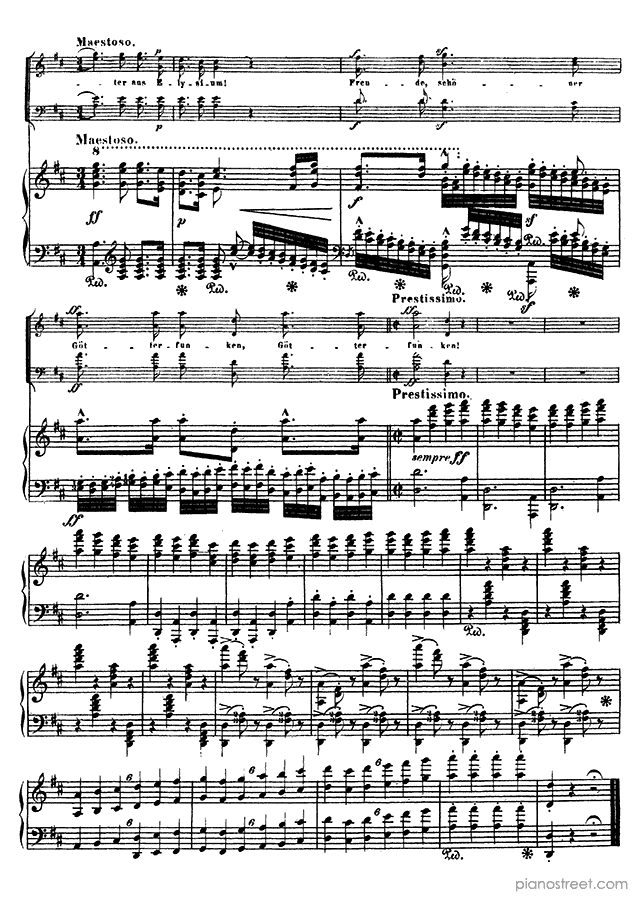 Piano sheet music and recordings. This piece is from Beethoven Symphonies by Franz Liszt: Beethoven Symphony 9 Op. 125 in D Minor (published in 1824) . Level 8+, Period: Classical