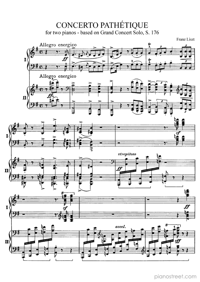 Early Romantic piano sheet music by Franz Liszt to download and print instantly: Concerto Pathétique S. 258 in the key of . Level 8+, compositional type: Two pianos (published in 1865)