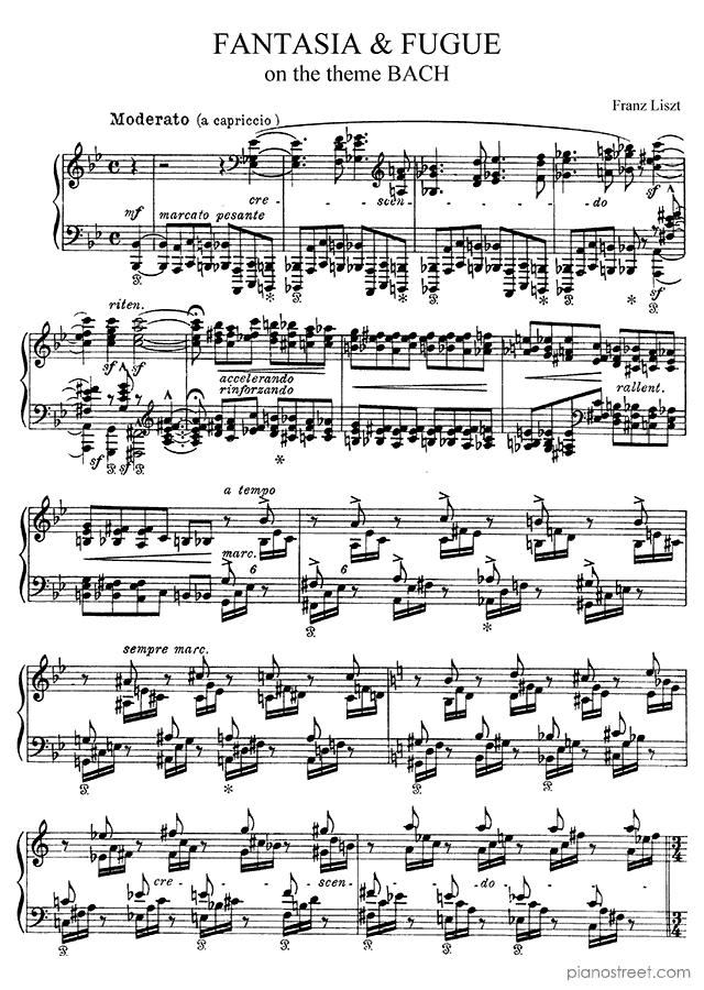 DOWNLOAD Fantasia & Fugue on the Theme BACH by Franz Liszt. High quality classical piano scores from the Piano Street sheet music library.