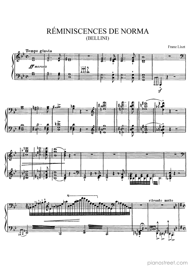 DOWNLOAD: Franz Liszt - Reminiscences de Norma S. 394 ( from Fantasies and paraphrases by Liszt). Piano sheet music to print immediately or to view in mobile devices.