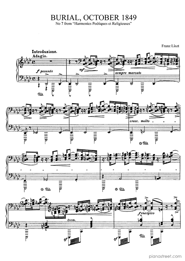 Funérailles No. 7 in F Minor (published in 1852) from Harmonies Poétiques et Religieuses by Franz Liszt - piano sheet music to download and print instantly.