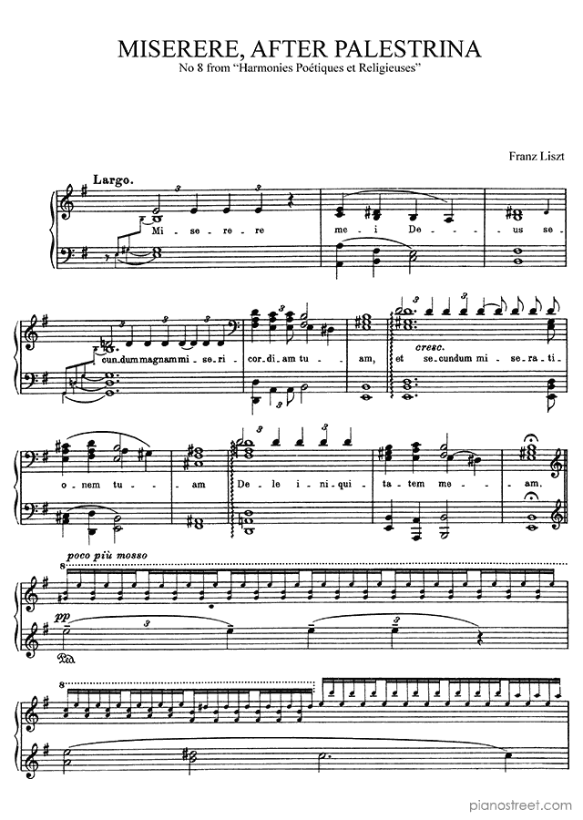 DOWNLOAD: Franz Liszt - Miserere, after Palestrina No. 8 in E Major ( from Harmonies Poétiques et Religieuses by Liszt). Piano sheet music to print immediately or to view in mobile devices.