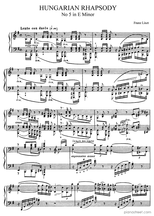 Classical piano sheet music by Liszt to download: Hungarian Rhapsody No. 5 in the key of This piece has difficulty level 8+ in the category Piece