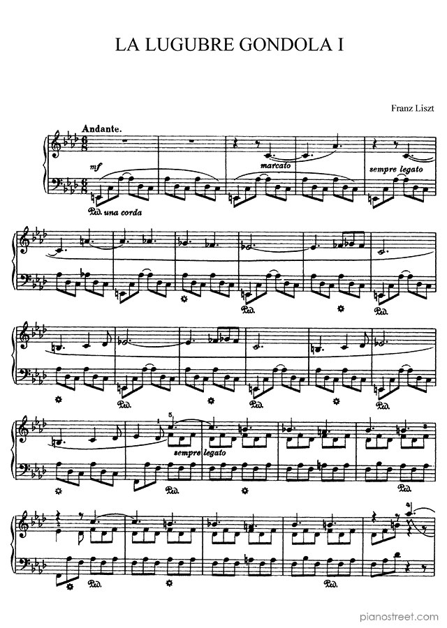 Liszt: La Lugubre Gondola - 1st Version (published in 1882) . DOWNLOAD piano sheet music from Piano Street digital sheet music library.