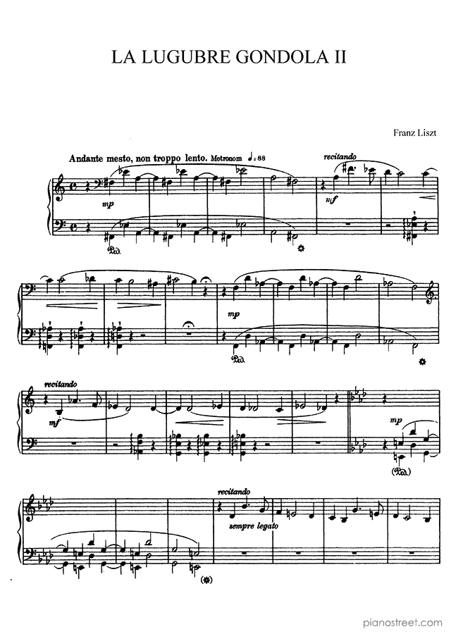 La Lugubre Gondola - 2nd Version by Franz Liszt. Sheet music and recordings of thousands of piano pieces by Franz Liszt and many other composers to view in digital devices, print or listen to.