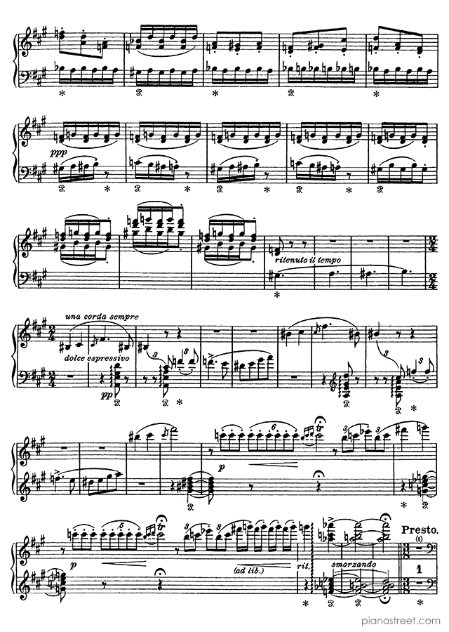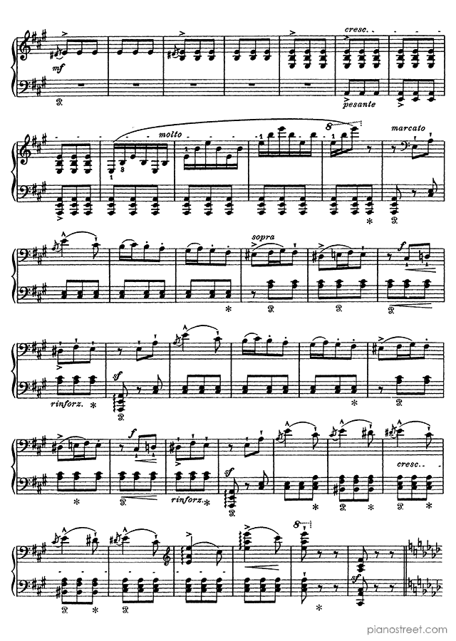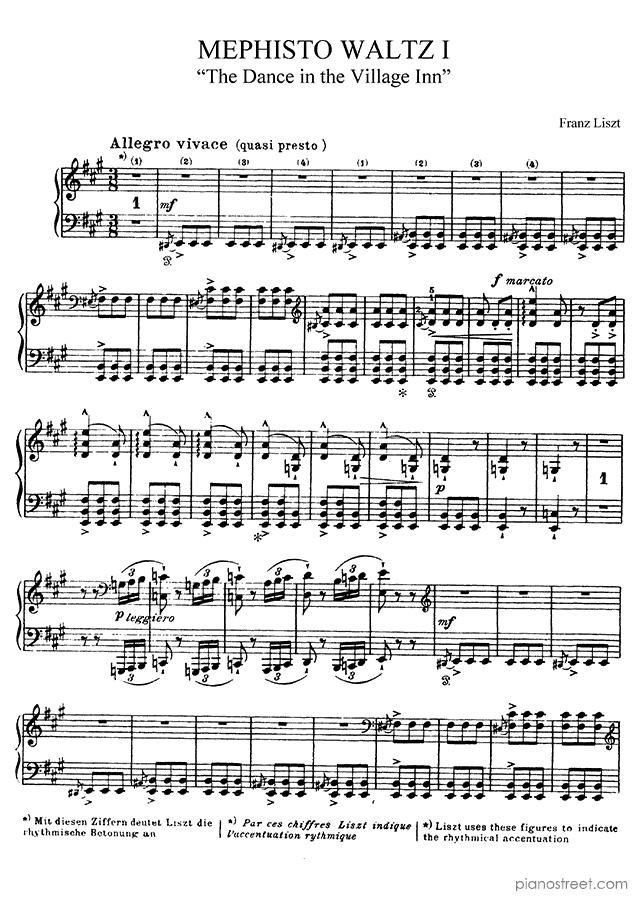 Mephisto Waltz no 1 in A Major, by the early romantic composer Franz Liszt. This piano piece was published in 1860 and is included in Miscellaneous pieces by Liszt.