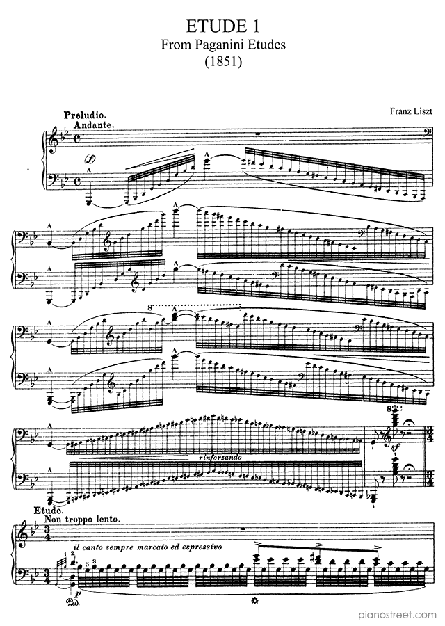 Liszt: Etude No. 1 in G Minor (published in 1851) . DOWNLOAD piano sheet music from Piano Street digital sheet music library.
