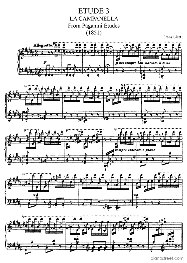 Etude - La Campanella in G-sharp Minor - No. 3 is a piano piece by the early romantic composer Franz Liszt who lived between the years 1811 and 1886.