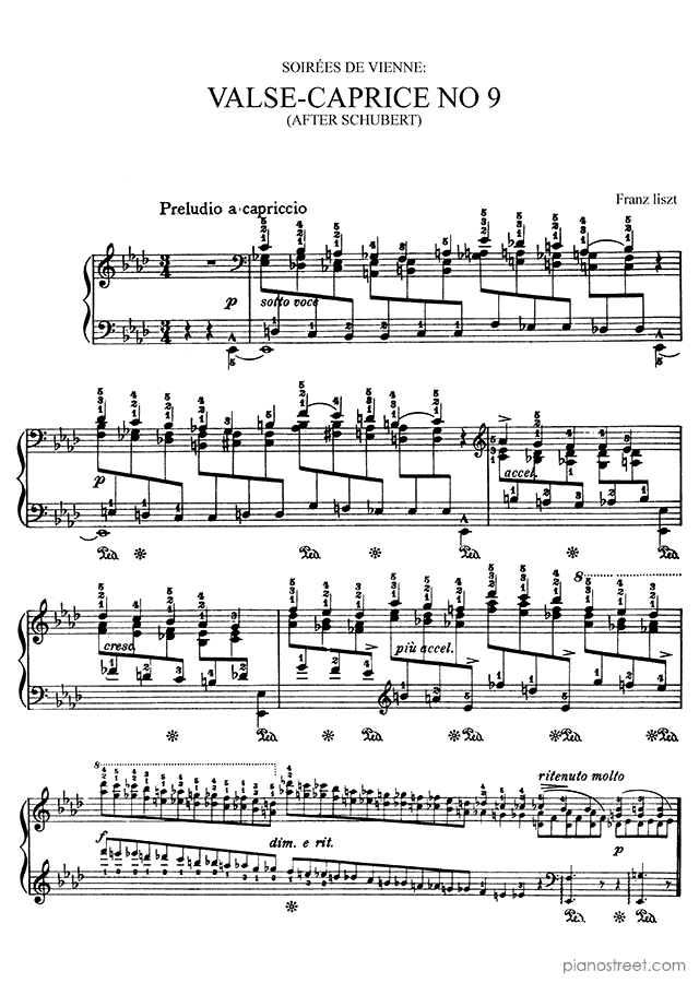 DOWNLOAD: Franz Liszt - Valse - Caprice No. 9 in A-flat Major ( from Soirées de Vienne by Liszt). Piano sheet music to print immediately or to view in mobile devices.