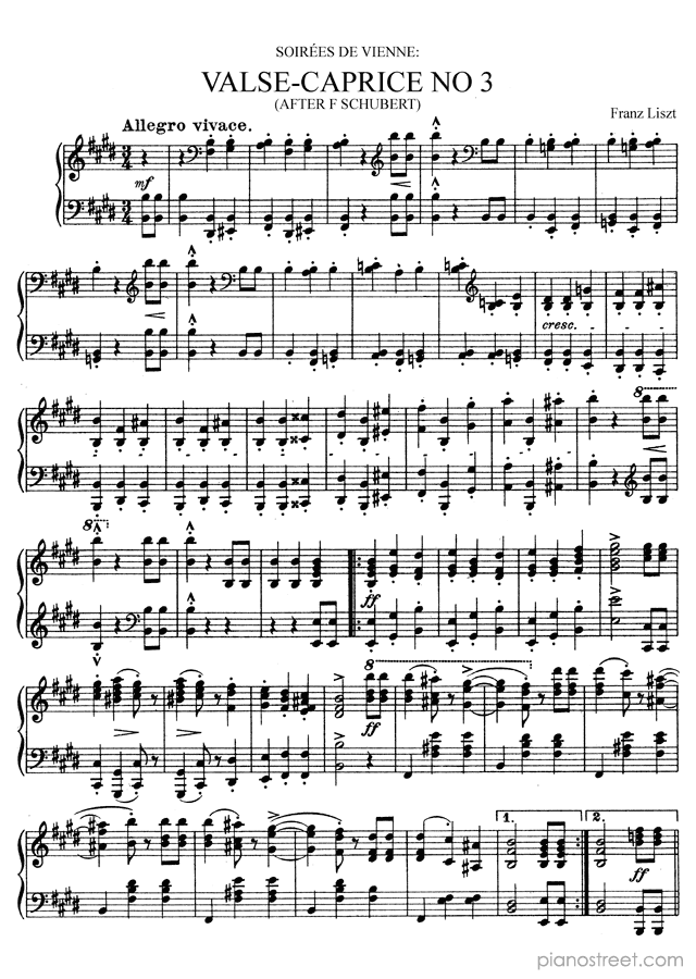 DOWNLOAD Valse-Caprice in E Major S. 427 No. 3 by Franz Liszt (published in 1852) . High quality classical piano scores from the Piano Street sheet music library.