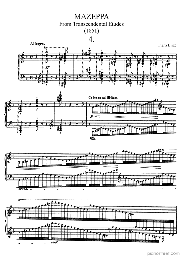 Mazeppa in D Minor - No. 4 is a piano piece by the early romantic composer Franz Liszt who lived between the years 1811 and 1886.