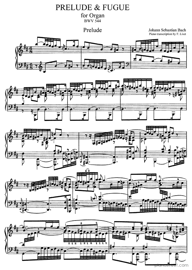 Baroque piano sheet music by Franz Liszt to download and print instantly: Bach: Prelude & Fugue for Organ, BWV 544 in the key of . Level 8+, composition type: Transcription