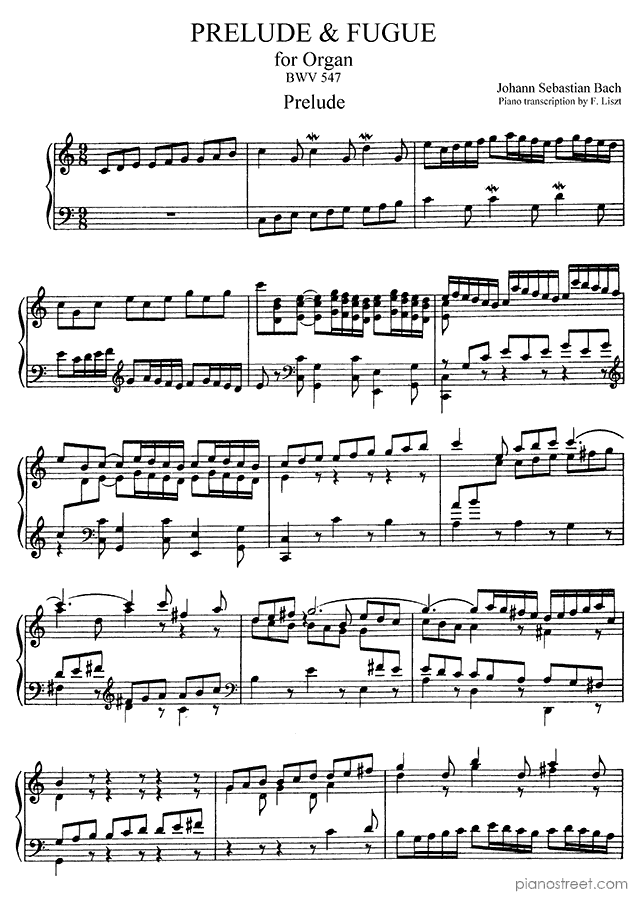 Bach: Prelude & Fugue for Organ, BWV 547 in C Major, a composition by the baroque composer Franz Liszt. It was composed during the Baroque period and is part of Transcriptions by Liszt.