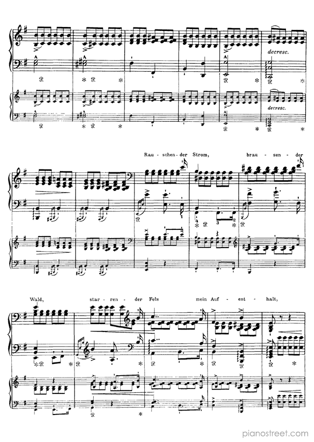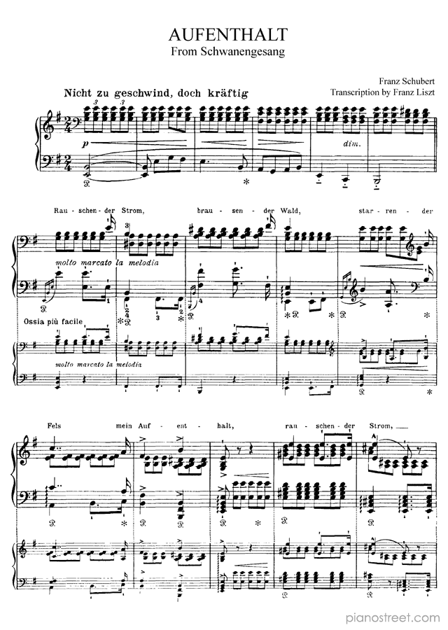 Early Romantic piano sheet music by Franz Liszt to download and print instantly: Schubert: Aufenthalt S. 560 No. 3 in the key of . Level 8, compositional type: Transcription (published in 1839)
