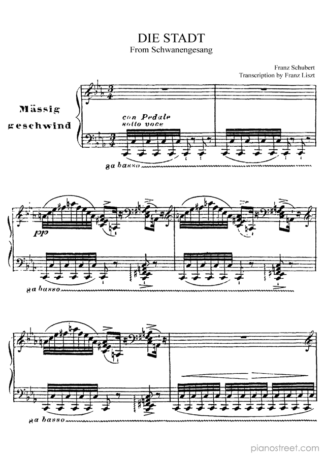 Liszt: Schubert: Die Stadt S. 560 No. 1 in C Minor (published in 1839) . DOWNLOAD piano sheet music from Piano Street digital sheet music library.