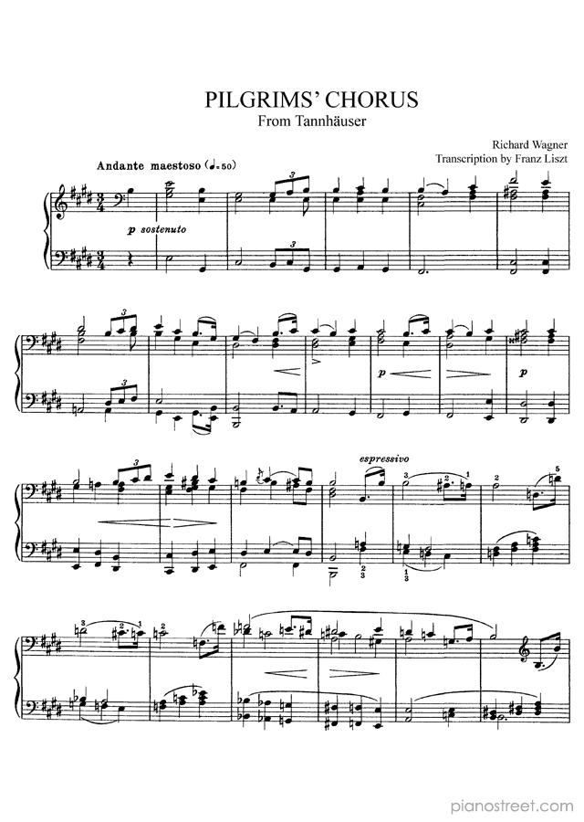 DOWNLOAD: Franz Liszt - Wagner: Pilgrim's Chorus S. 443 in E Major ( from Transcriptions of other composers' works by Liszt). Piano sheet music to print immediately or to view in mobile devices.