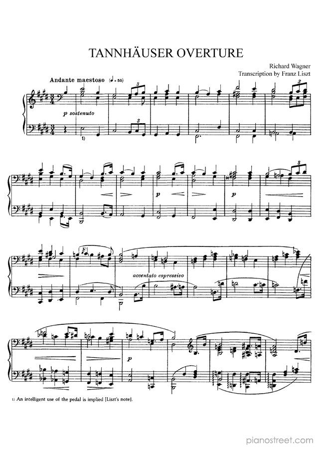 Early Romantic piano sheet music by Franz Liszt to download and print instantly: Wagner: Tannhäuser overture S. 442 in the key of . Level 8+, compositional type: Transcription (published in 1848)