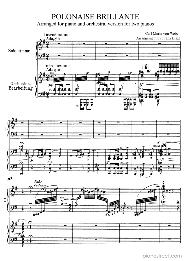 Franz Liszt: Weber: Polonaise Brillante S. 367 in E Major from Transcriptions of other composers' works - piano sheet music to print instantly. This piece is level 8+ and was composed during the Early Romantic period.