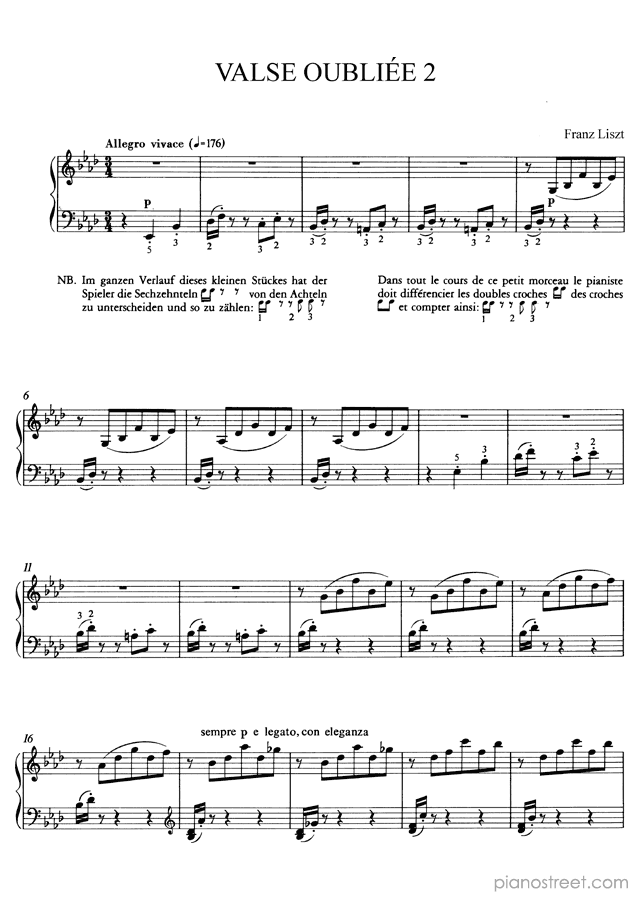 Liszt: Valse Oubliée S. 215 No. 2 in A-flat Major (published in 1883) . DOWNLOAD piano sheet music from Piano Street digital sheet music library.