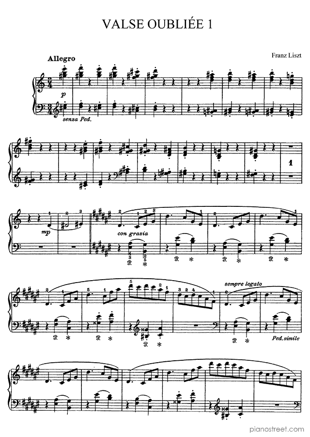 Downloadable piano sheet music by Franz Liszt to print: Valse Oubliée No. 1 (published in 1881)