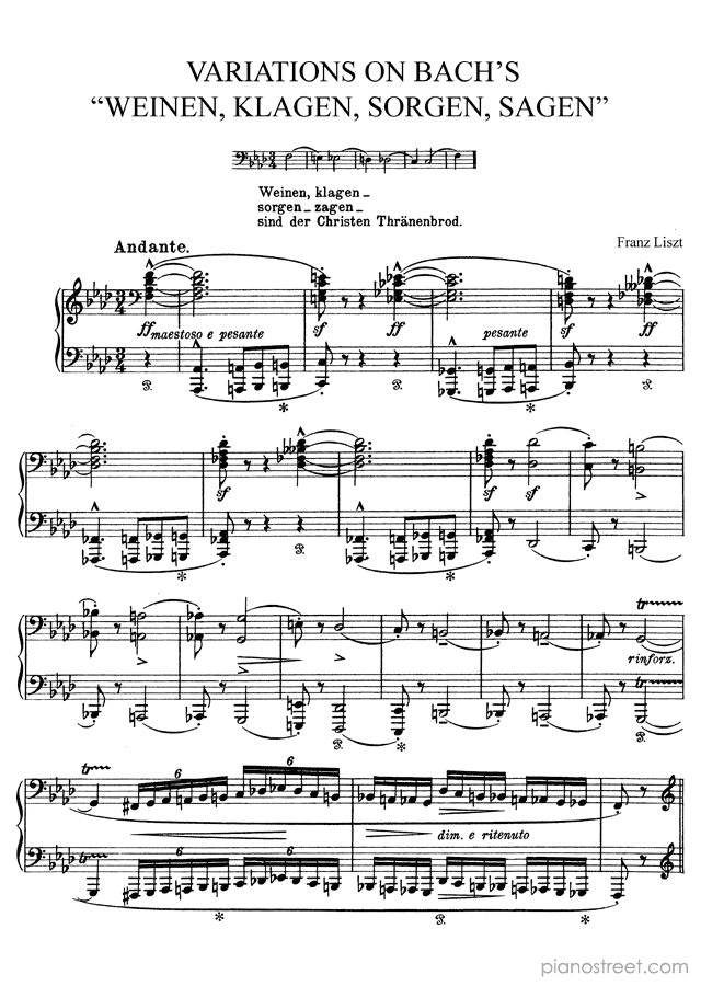 DOWNLOAD: Franz Liszt - Variations on Bach's Weinen, Klagen, Sorgen, Sagen S. 180 in F Minor ( by Liszt). Piano sheet music to print immediately or to view in mobile devices.
