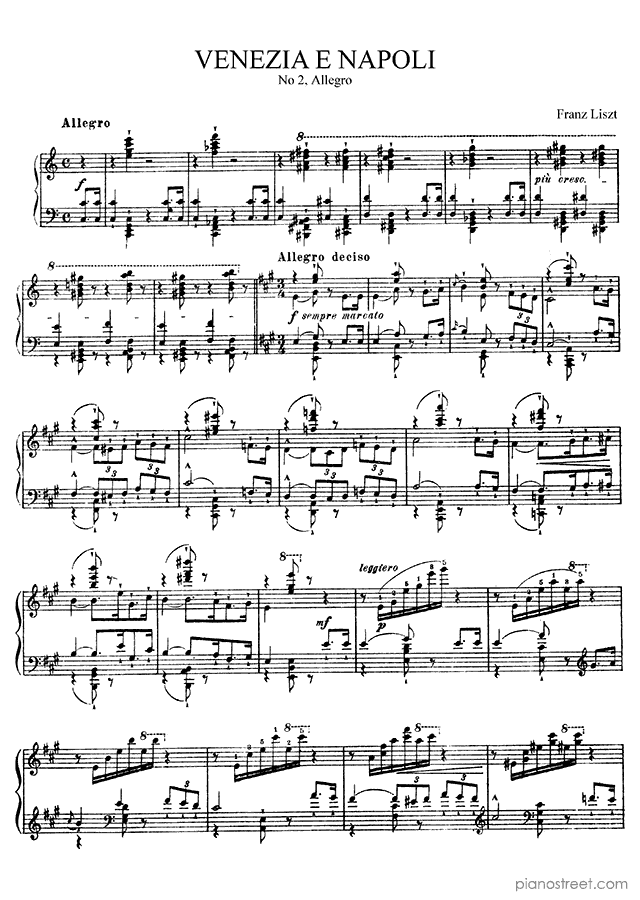 Downloadable piano sheet music from Venezia e Napoli by Franz Liszt to print: Allegro No. 2 (published in 1840)