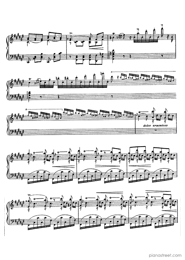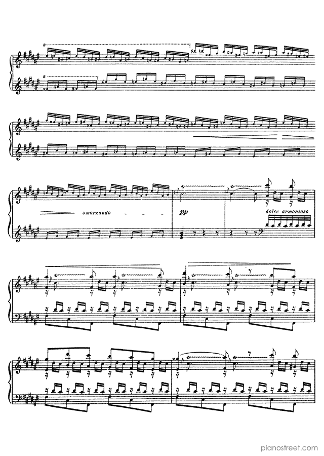 Classical piano sheet music by Liszt to download: Andante placido No. 3 in the key of This piece has difficulty level 8+ in the category Piece