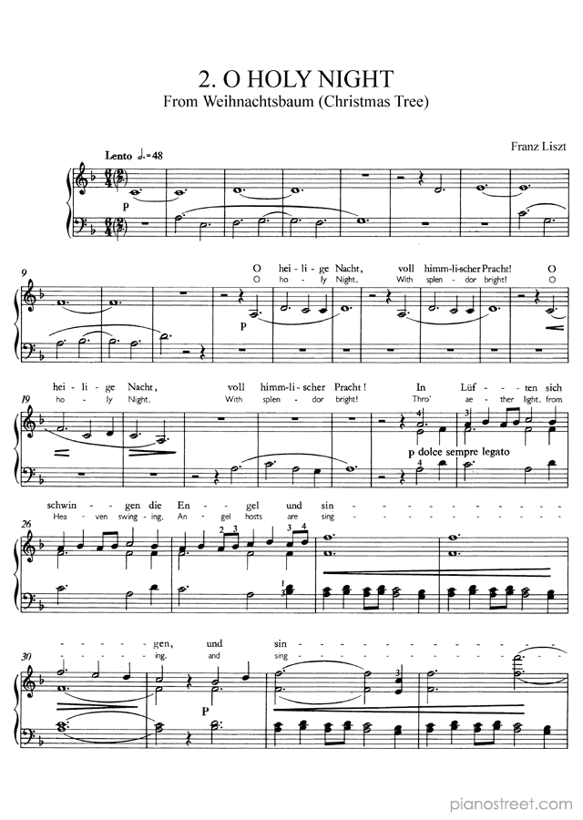DOWNLOAD O Holy Night in D Minor S. 186 No. 2 by Franz Liszt (published in 1876) . High quality classical piano scores from the Piano Street sheet music library.
