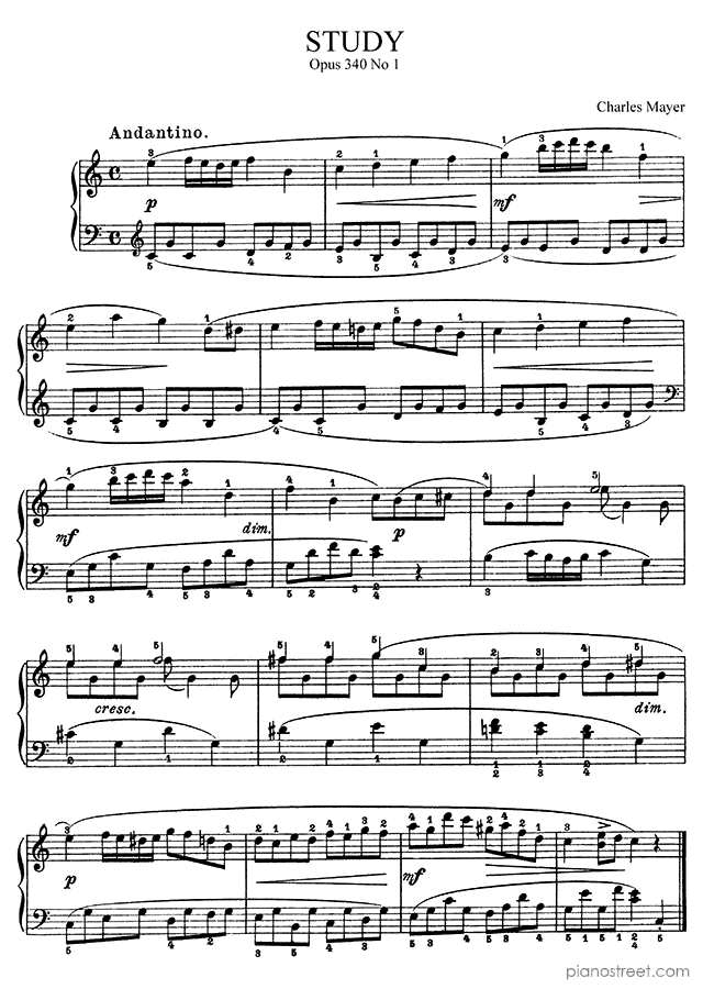 Classical piano sheet music by Mayer to download: Study Op. 340 No. 1 in the key of This piece has difficulty level 2 in the category Study