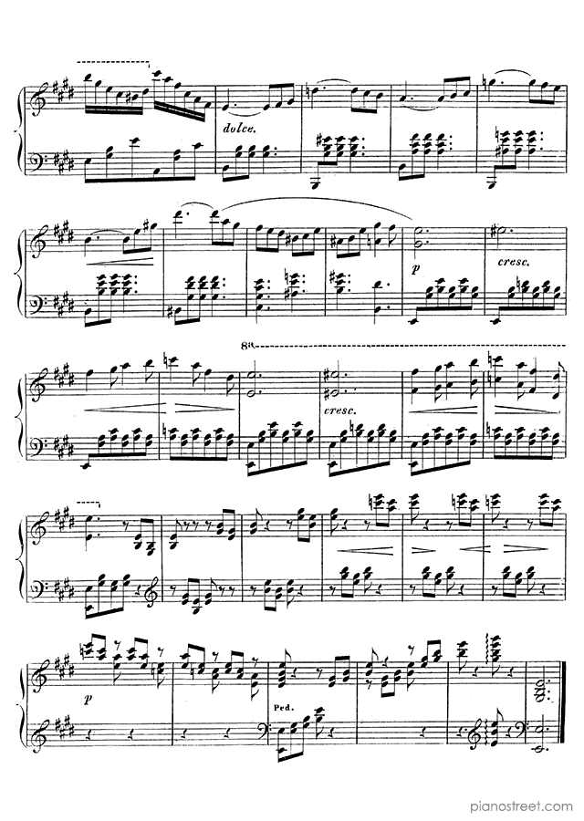 Downloadable piano sheet music from Songs for Piano by Fanny Mendelssohn-Hensel to print: Allegretto grazioso Op. 2 No. 3 in E Major (published in 1846)