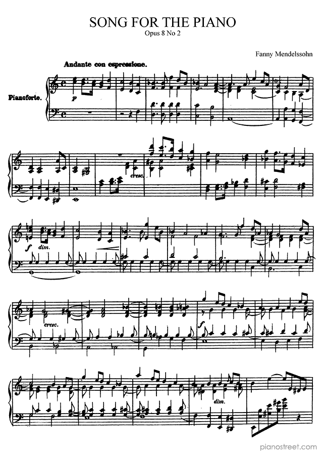 Andante con espressione in A Minor - Op. 8 No. 2 is a piano piece by the early romantic composer Fanny Mendelssohn-Hensel who lived between the years 1805 and 1847.