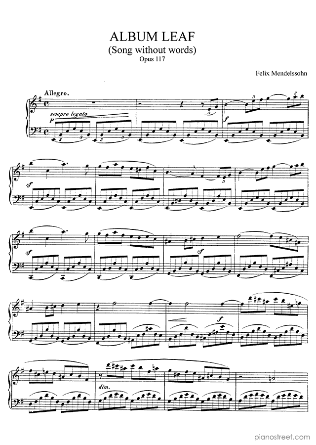 Classical piano sheet music by Mendelssohn to download: Album Leaf Op. 117 in the key of This piece has difficulty level 7 in the category Piece