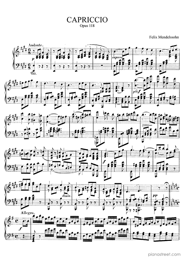 Early Romantic piano sheet music by Felix Mendelssohn to download and print instantly: Capriccio Op. 118 in the key of . Level 8, composition type: Piece (published in 1837)
