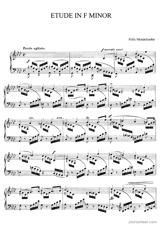 Downloadable piano sheet music by Felix Mendelssohn to print: Etude in F Minor (published in 1836)