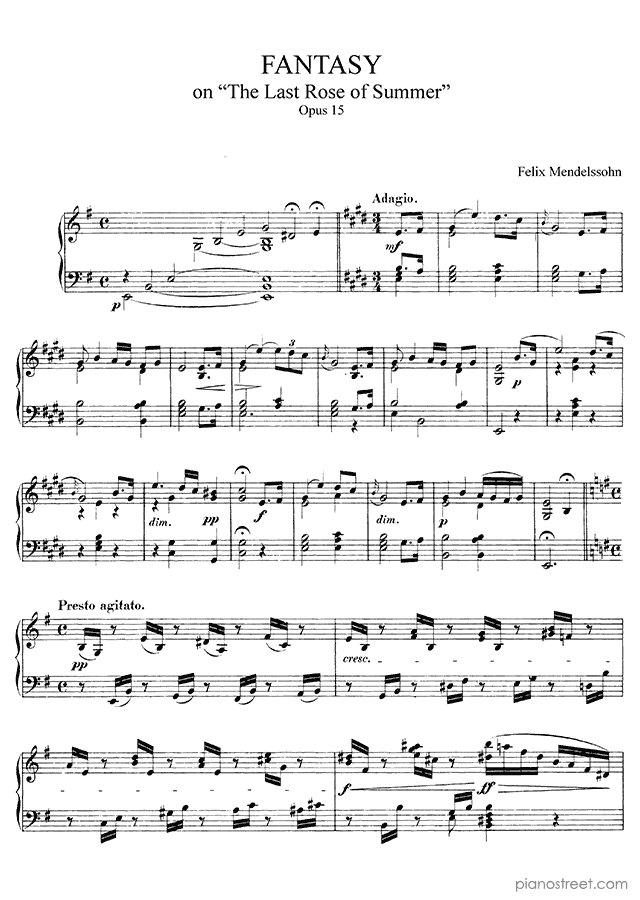 Fantasy on The last Rose of Summer Op. 15 in E Major by Felix Mendelssohn - piano sheet music to download and print instantly.