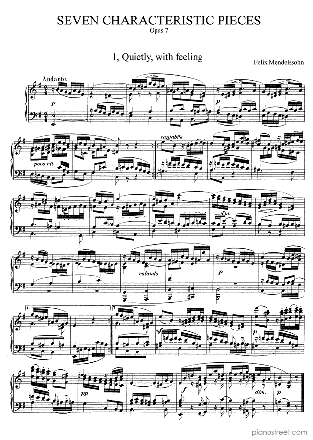 This piece is from the Early Romantic era and is included in Mendelssohn's Seven Characteristic Pieces.