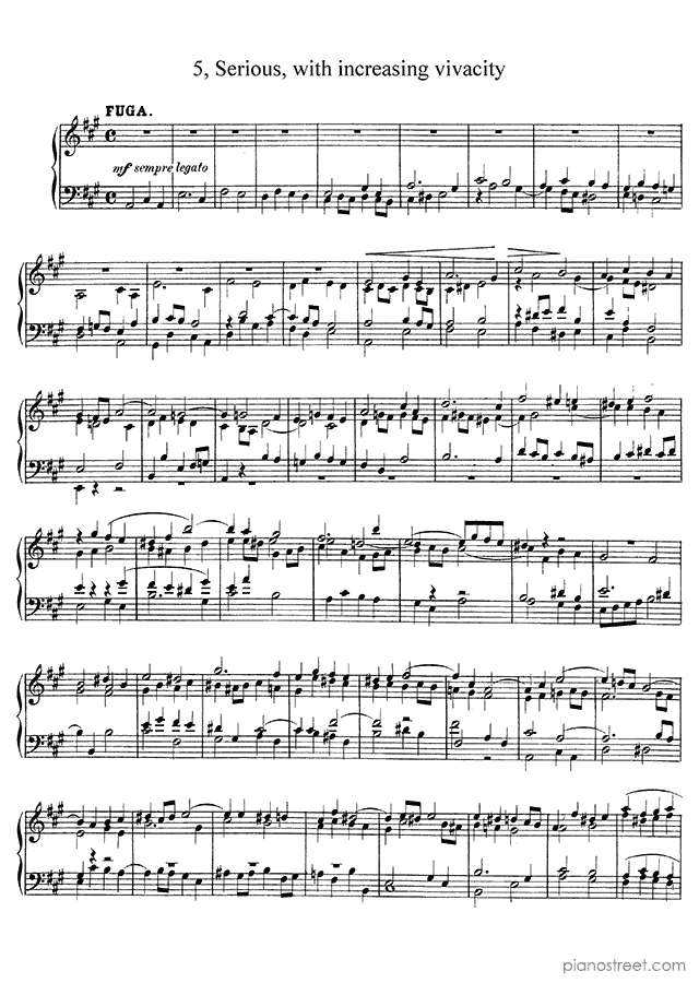 Early Romantic piano sheet music by Felix Mendelssohn to download and print instantly: Fugue: Serious, with Increasing Vivacity Op. 7 No. 5 in the key of . Level 7, composition type: Piece