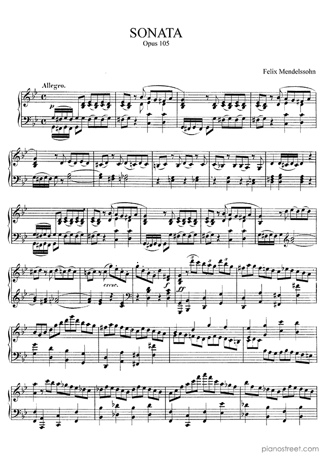 DOWNLOAD Sonata in G Minor Op. 105 by Felix Mendelssohn (published in 1821) . High quality classical piano scores from the Piano Street sheet music library.