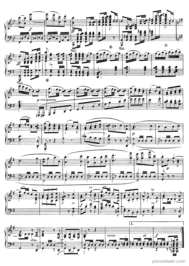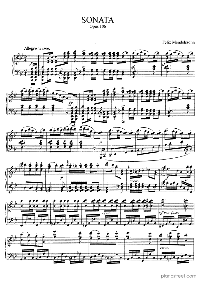 Downloadable piano sheet music by Felix Mendelssohn to print: Sonata Op. 106 in B-flat Major (published in 1827)