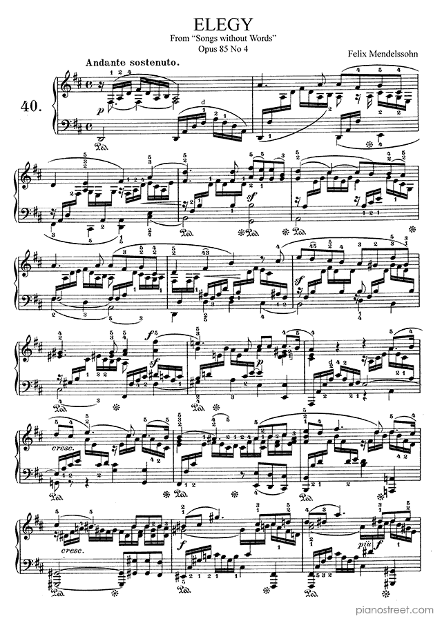 DOWNLOAD: Felix Mendelssohn - Elegie Op. 85 No. 4 in D Major ( from Songs Without Words by Mendelssohn). Piano sheet music to print immediately or to view in mobile devices.
