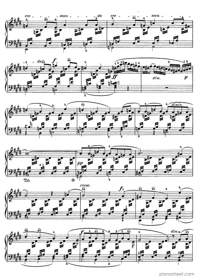 The Songs Without Words are hauntingly beautiful, and also very accessible. Intermediate pianists can play many of these gems, and this undoubtedly contributed to their ultimate popularity. There are 48 songs that are grouped into eight codices. Mendelssohn intended the songs to remain without lyrics even though many of his friends tried unsuccessfully to add words to the compositions. Even Liszt was inspired by these pieces, and he honored Mendelssohn with his “Großes Konzertstück über Mendelssohns Lieder Ohne Worte,” or “Grand Concert Piece on Mendelssohn’s Songs Without Words” for two pianos.Forum posts about this piece: