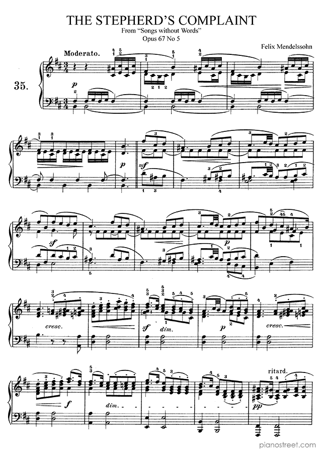 Early Romantic piano sheet music by Felix Mendelssohn to download and print instantly: The Shepherd's Complaint Op. 67 No. 5 in the key of . Level 8, compositional type: Piece (published in 1845)