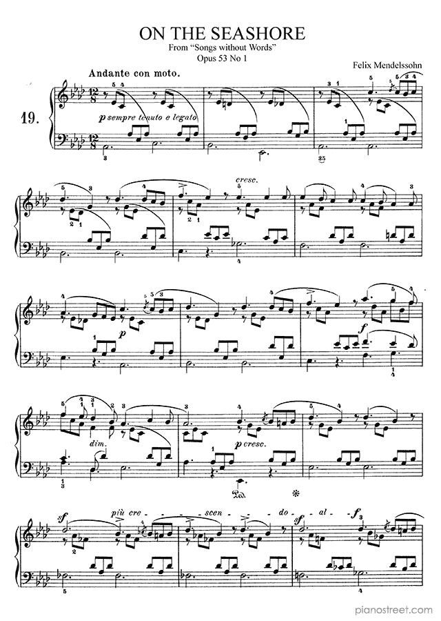 DOWNLOAD: Felix Mendelssohn - On the Seashore Op. 53 No. 1 in A-flat Major ( from Songs Without Words by Mendelssohn). Piano sheet music to print immediately or to view in mobile devices.