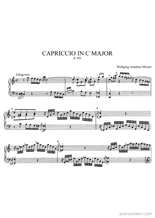 DOWNLOAD: Wolfgang Amadeus Mozart - Capriccio K. 395 in C Major ( by Mozart). Piano sheet music to print immediately or to view in mobile devices.