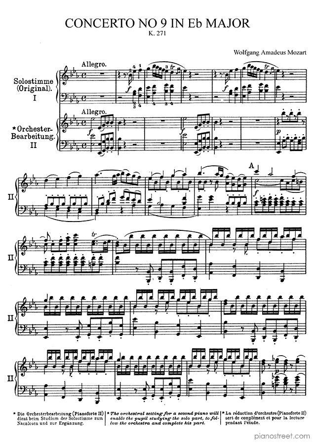 Classical piano sheet music by Mozart to download: Piano Concerto 9 K. 271 in the key of This piece has difficulty level 8 in the category Concerto