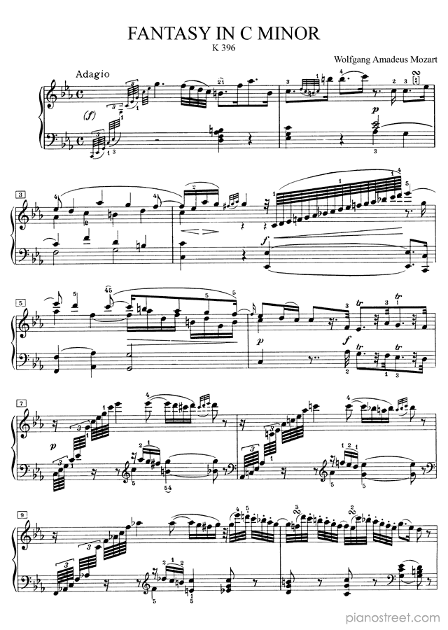 DOWNLOAD Fantasy in C Minor K. 396 by Wolfgang Amadeus Mozart (published in 1782) . High quality classical piano scores from the Piano Street sheet music library.